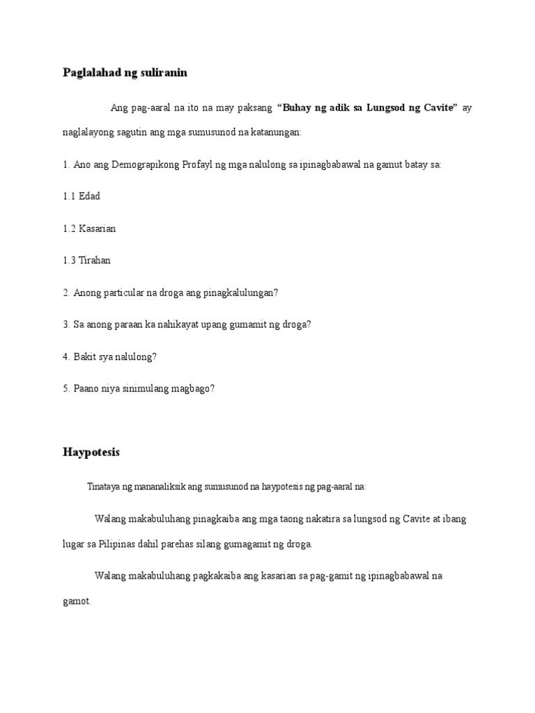 Ang paglalahad ng suliranin ay ang pinakasentro ng pananaliksik. A short summary of this paper. Ang mga suliraning ito ang magiging sentro o magsisilbing gabay sa pagkalap ng impormasyon.